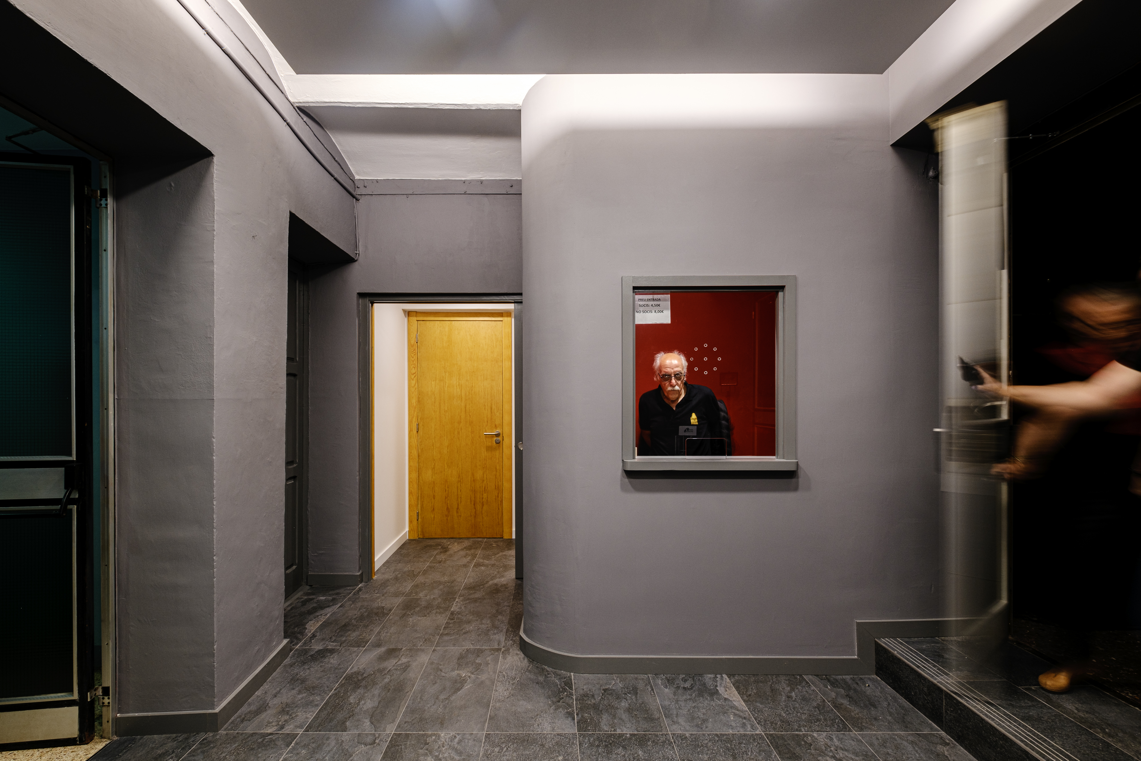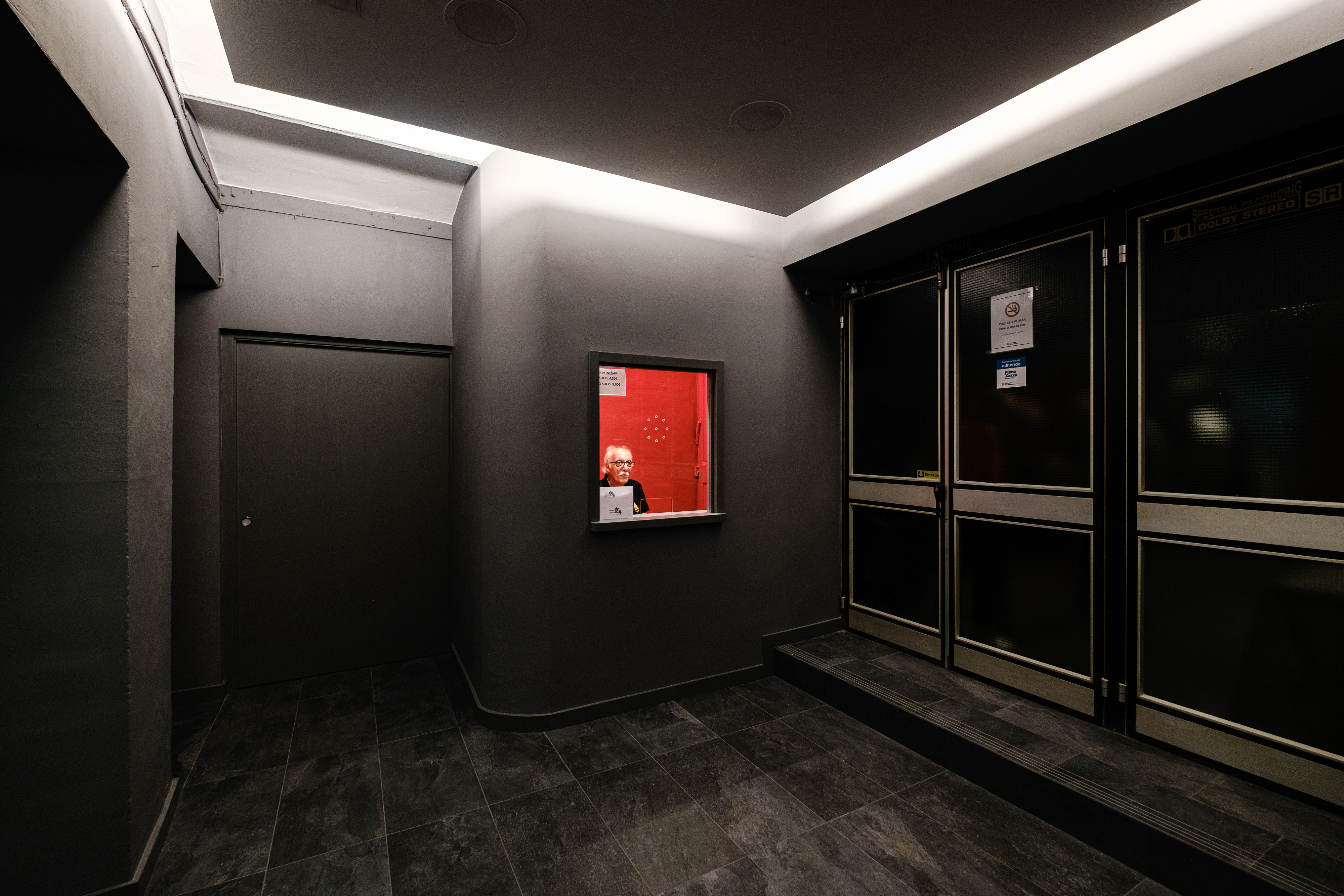El projecte contempla la reforma interior de la zona del vestíbul del cinema, previ a l’entrada a la sala de projecció. L’espai serveix per la venda d’entrades, i dona accés als lavabos. L’actuació proposa la reforma interior dels lavabos, concentrant-los en el mateix espai i alliberant u na zona per ús de magatzem, i la creació d’una nova taquilla.