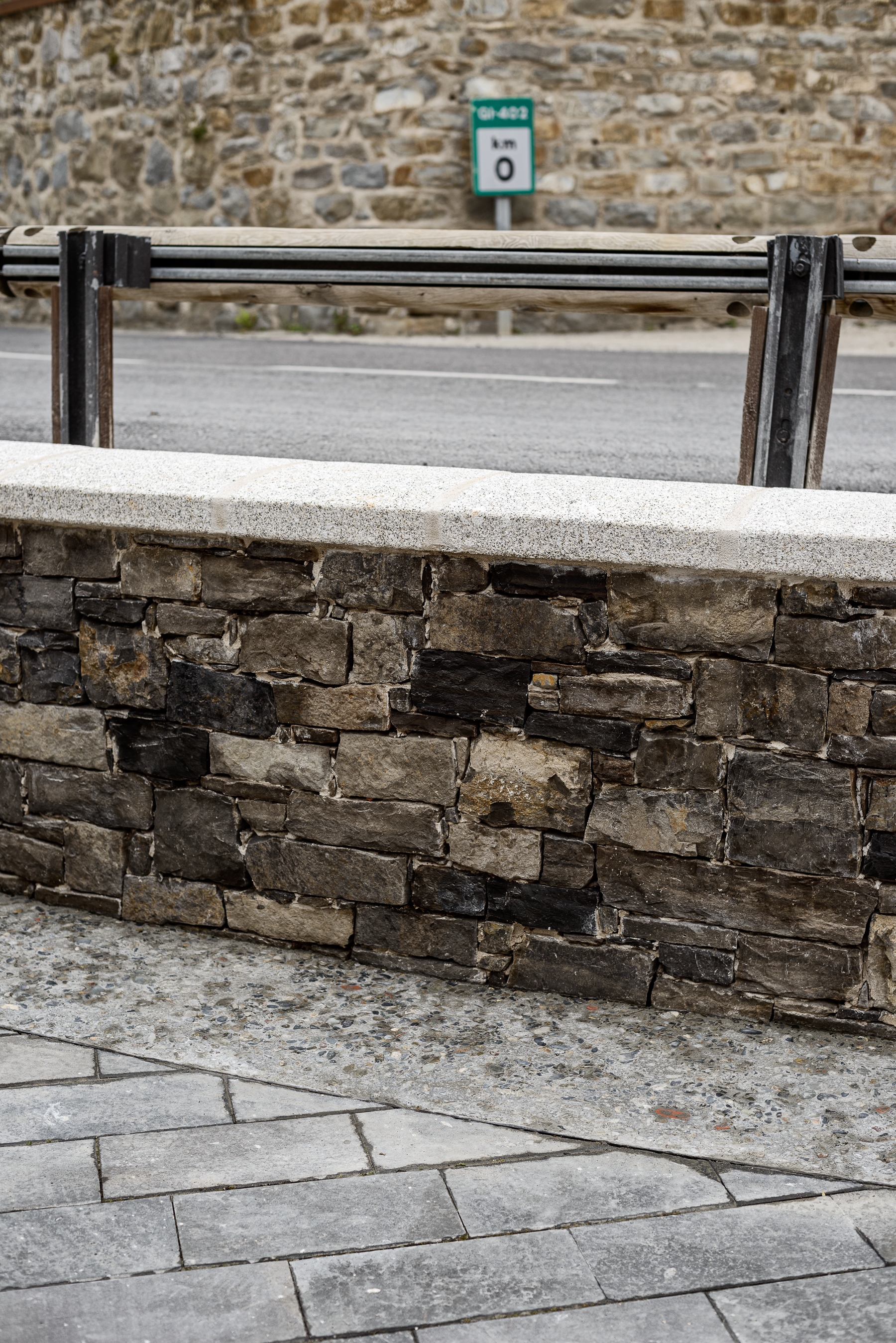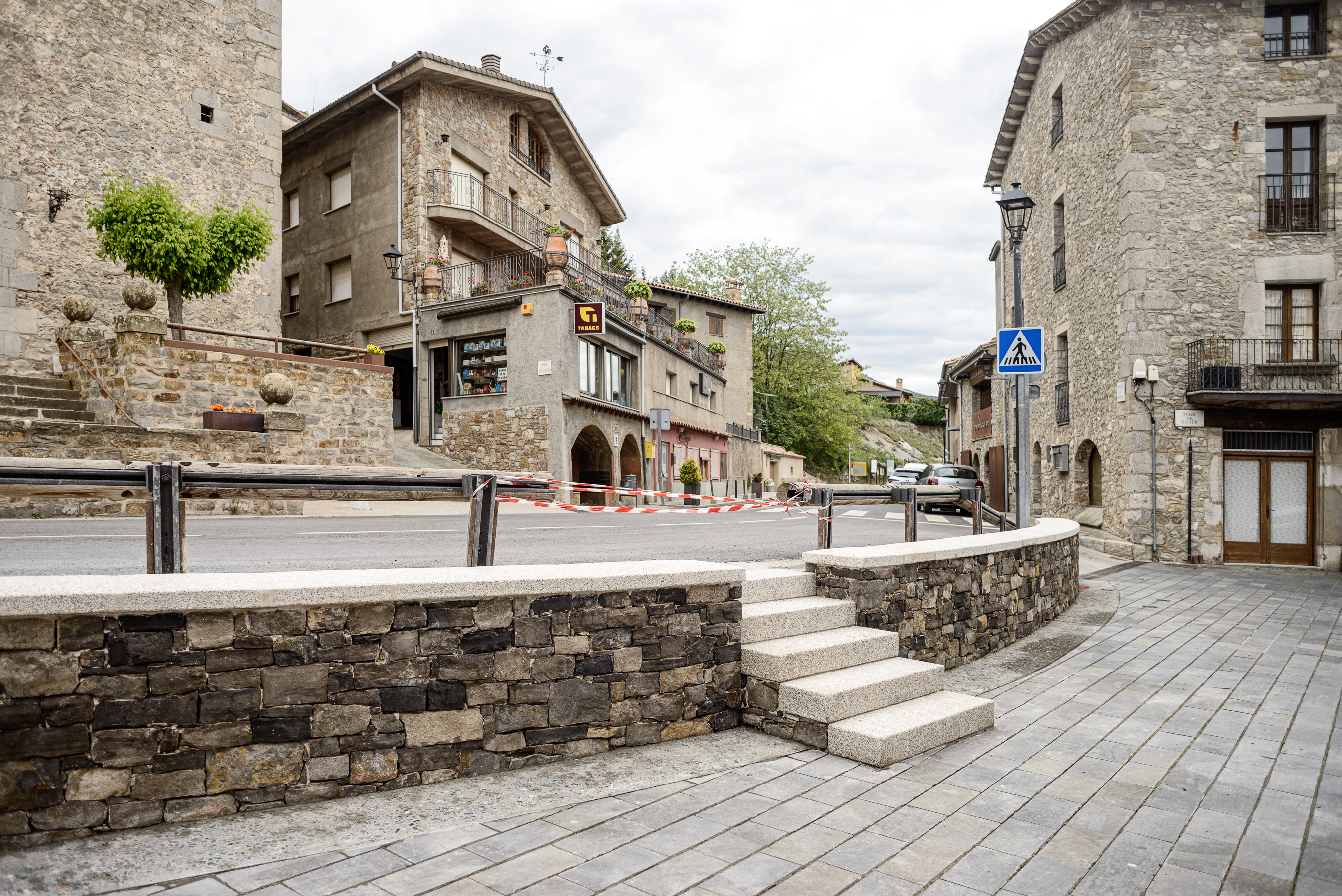 La plaça del Roser de Gombrèn limita amb la carretera GI-401, que travessa el poble. La via es troba a una cota superior, i el desnivell es salva mitjançnat un mur, que antigament va ser objecte de reforma, i sobre el qual es va col·locar un banc prefabricat. L’objectiu de l’actuació era retornar el mur a un estat el més semblant possible a l’inicial.